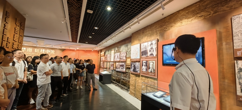 同志们首先参观了“旗展华南 砥柱中流——华南人民抗战历史专题展”。该专题展通过五个板块内容全面展示了华南人民在抗日战争中的英勇事迹和巨大贡献。大家认真聆听讲解,仔细观看每一张图片、每一段文字,深刻感受中国共产党在抗战中的中流砥柱作用和华南人民同仇敌忾、众志成城的爱国精神。