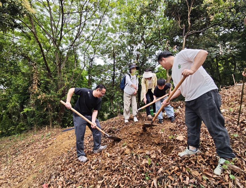 随后,全体人员来到植树区域,开展义务植树活动。在公园工作人员的指导下,大家分工协作,挥锹铲土、扶苗浇水,干劲十足。一棵棵新苗扎根沃土,为石门国家森林公园增添了一片生机勃勃的“生态林”。此次植树行动不仅是对“绿水青山就是金山银山”理念的生动实践,也进一步强化了党员干部的生态责任意识,还是一次生动的家风课堂——长辈以身作则,教导下一代热爱劳动、敬畏自然、守护家园。