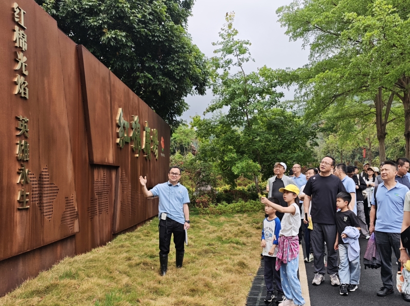 上午,全体人员首先来到三英雄纪念园。这里安葬着1966年在救火中英勇牺牲的刘桂东、梅锦康、严群英三位知青烈士。园内矗立着由广州雕塑家黄奔凯创作的火炬状纪念雕塑,三棵参天木棉树环绕其间,象征英雄精神生生不息。在“英雄花开英雄城”纪念舞台前,大家认真聆听三位护林英雄的感人事迹。如今,英雄花岁岁绽放,英雄精神代代相传,英雄的事迹激励着大家以更加饱满的热情、更加务实的作风,立足岗位、奋勇争先,为生态文明建设贡献智慧与力量。