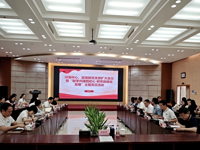 为深入推进树立和践行正确政绩观学习教育,强化党建与业务深度融合,凝聚高质量发展合力,3月26日,河海中心、咨询部党支部以全体党员(扩大)会议的形式,联合开展“联学共建践初心 树牢政绩促发展”主题党日活动,党委委员、副所长陆俊卿出席会议,河海中心和咨询部共计44名干部职工现场参会。