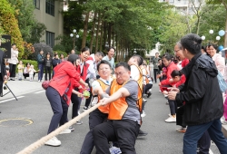 开幕式结束后,第一个竞技项目——拔河比赛火热开赛。领队猜拳定场地、排阵型,互相鼓劲,跃跃欲试。裁判哨音一响,绳子马上被绷紧。队员们紧握长绳、倾身后仰,将全身力量贯注一绳;场边啦啦队呐喊如潮,声声激荡,凝聚成集体意志的澎湃和声。力量在每一次拉扯中迸发,毅力在每一次坚持中彰显。