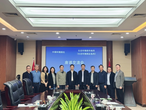 11月26日,中国环境报社党委书记、社长李东林带队到生态环境部华南环境科学研究所(生态环境部生态环境应急研究所)座谈交流。华南所(应急所)党委书记、所长严刚热情接待并主持召开座谈交流会。双方围绕深化生态环境宣传协作、推动科研成果转化、服务地方生态环境治理等开展深入交流,并就下一步合作方向达成共识。