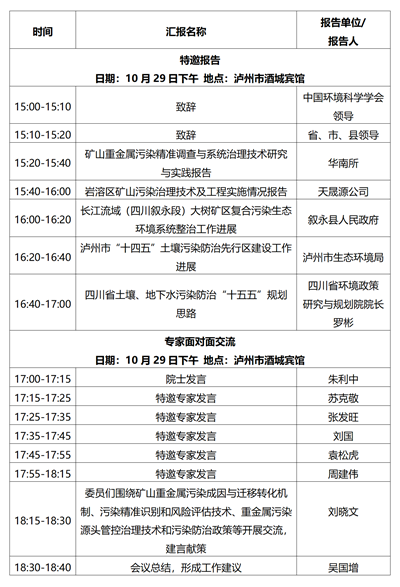 矿山重金属污染防治专题面对面交流会:15:00-18:40。(详见下表)