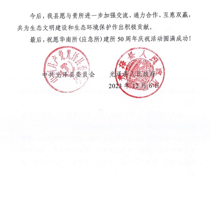 中共光泽县委员会光泽县人民政府贺信