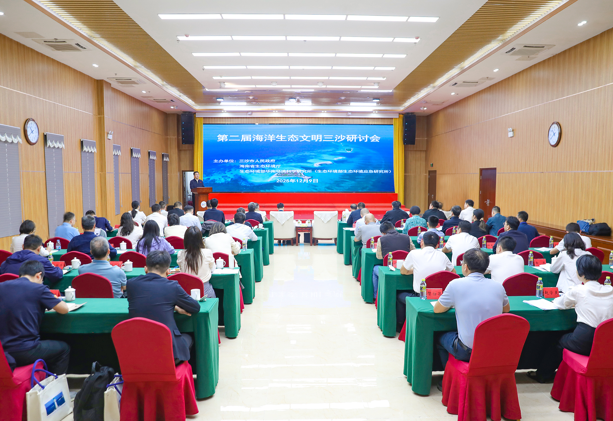 12月9-10日,生态环境部华南环境科学研究所(生态环境部生态环境应急研究所)与三沙市人民政府、海南省生态环境厅在三沙市永兴岛联合举办了第二届海洋生态文明三沙研讨会。本次研讨会以“生态岛礁,美丽南海”为主题,深入践行习近平生态文明思想和海洋强国建设有关论述,凝聚各方力量形成海洋生态文明三沙共识。研讨会邀请了生态环境部海洋生态环境司等相关司局,生态环境部相关直属单位,广东、广西、海南三省区生态环境厅,三沙市委等部门主要领导和代表,涉海生态环境保护研究特邀权威专家等共计60余人参会。